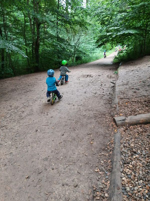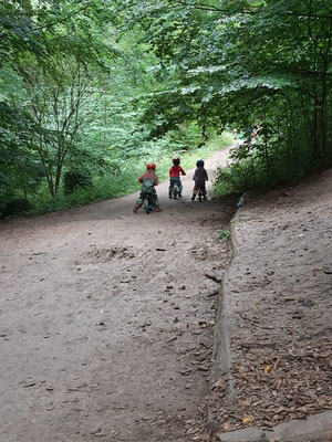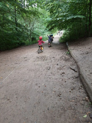Ende Juli fand der beliebte Fahrzeugtag im Wald statt. An diesem Tag dürfen alle Kinder ein eigenes Fahrzeug ihrer Wahl mitbringen und nach dem der Helm aufgesetzt wurde, kann los gedüst werden. Der Waldweg verwandelt sich dabei in eine richtige Strasse - da darf natürlich auch ein Zebrastreifen nicht fehlen!